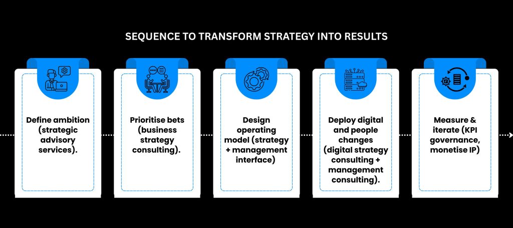 Strategy consulting determines an enterprise’s achievement in its market positioning, portfolio decisions, M&A reasons and long-term business architecture, while management consulting determines how to actualise the decisions in its processes, people, systems and governance. These are sequential and symbiotic; a strategy made without delivery is speculation, and implementation without a defined strategic direction is optimization without a purpose.